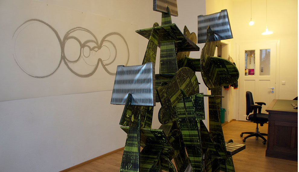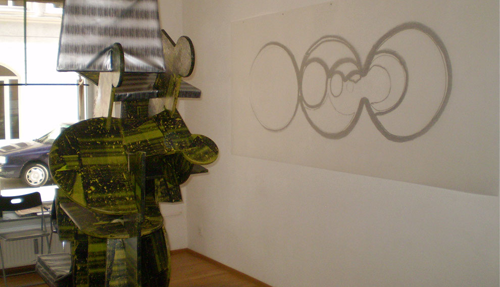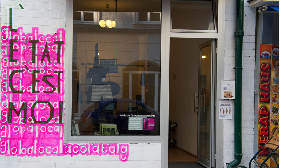 Die GLOBALOOCALACOLABOLG-Palindromschleifenzeichnung bei den gebrüdern, 2011 in München