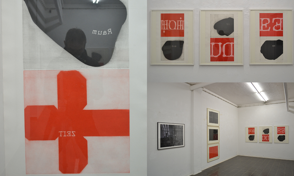 ZEITRAUM, 6tgl. Kupferdruck, Aquatinta, Zerkall Bütten, 40 x 40 cm, Auflage 1 in rot, 1 in schwarz und 1 in rot und schwarz, 1989