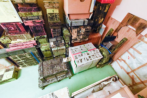 19 Offsetdruckplattenskulpturen-Boxen, 1996