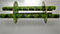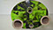 Graphitmonotypie mit grün gefärbtem Buchbinderleim auf Teppichrollkernen,